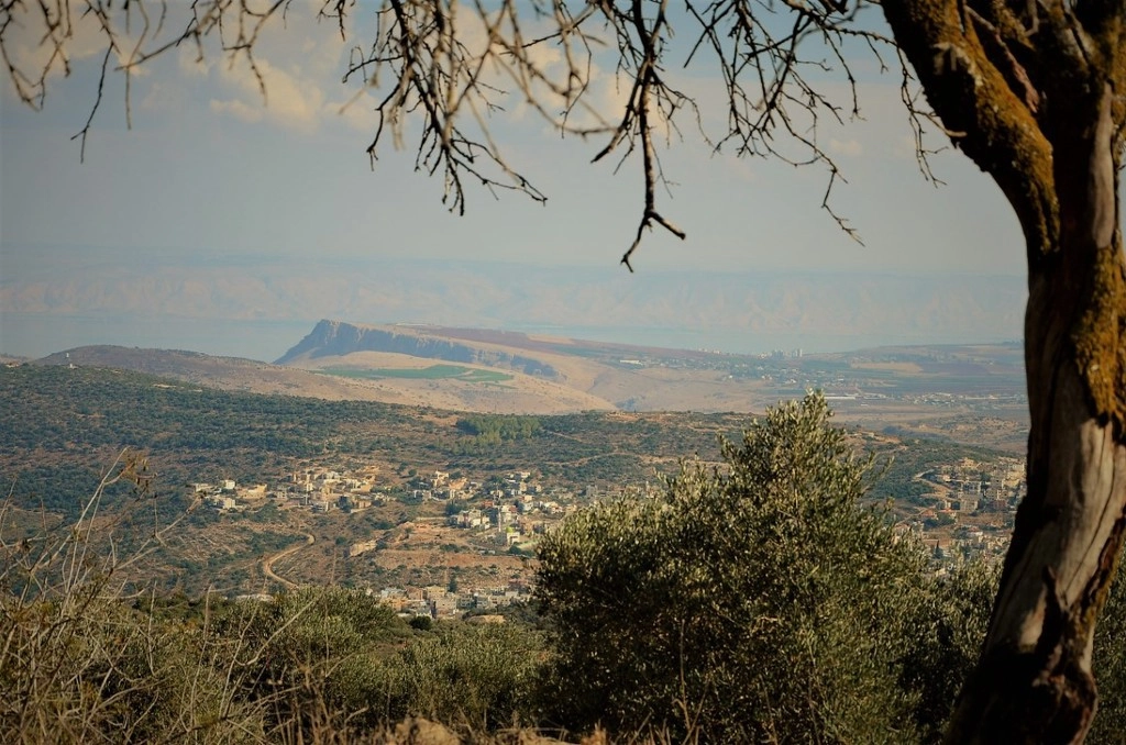 Обратите внимание на фоторафию внизу. Крутой обрыв на горизонте и озеро Кинерет чуть далее. Это не просто обрыв, а место с богатой историей. Называется «Карней Хиттин» (Рога Хиттина) и исходя из Библии, именно стоя над этим обрывом Иисус произнес Нагорную проповедь и протестанты в сим факте не сомневаются. В то же самое время, католики и православные этим местом считают Копернаум, что в десяти километрах севернее.