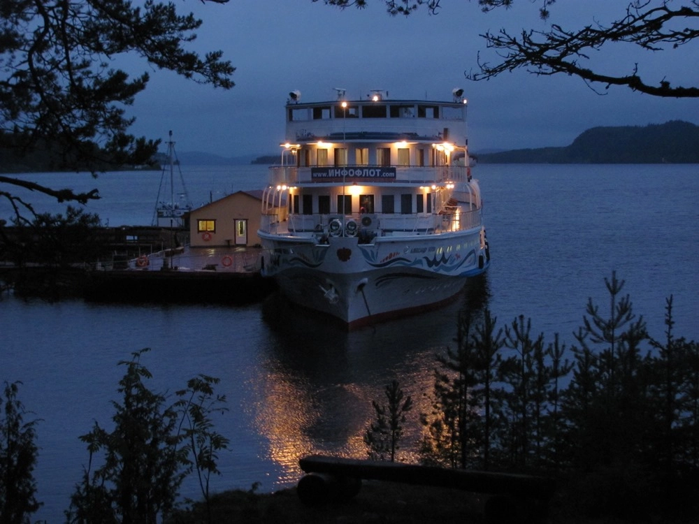 А теплоход, дождавшись возвращения группы туристов из Финляндии, около полуночи снимается с якоря, покидает Пеллотсаари и берёт курс на соседний Валаам. У нас круиз с расширенной программой на островах Северной Ладоги — вчера мы уже были на Валааме, а завтра снова будем стоять там: тогда и продолжим необычные прогулки по острову, побываем на скалистом побережье Валаама и ещё раз полюбуемся замечательной природой Ладожских шхер.