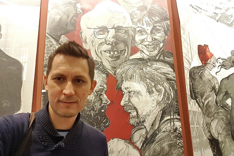 Где сейчас те бомжи из электричек, бог его знает. Растворились в километрах и новом времени без остатка. Вместе с ними ушёл очередной момент эпохи, и я ищу его на огромном выставочном панно.