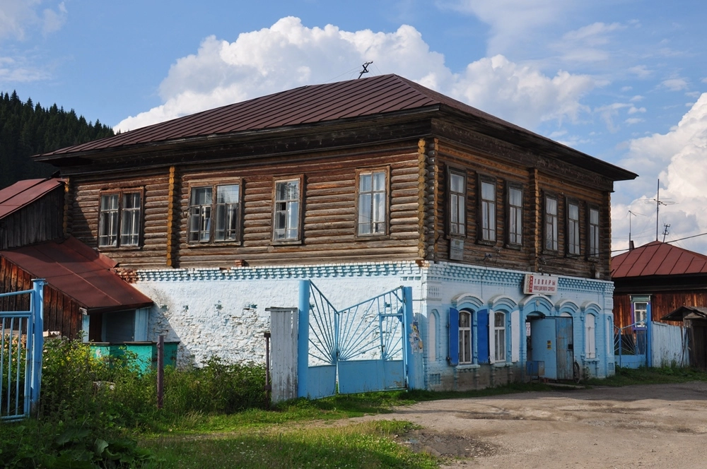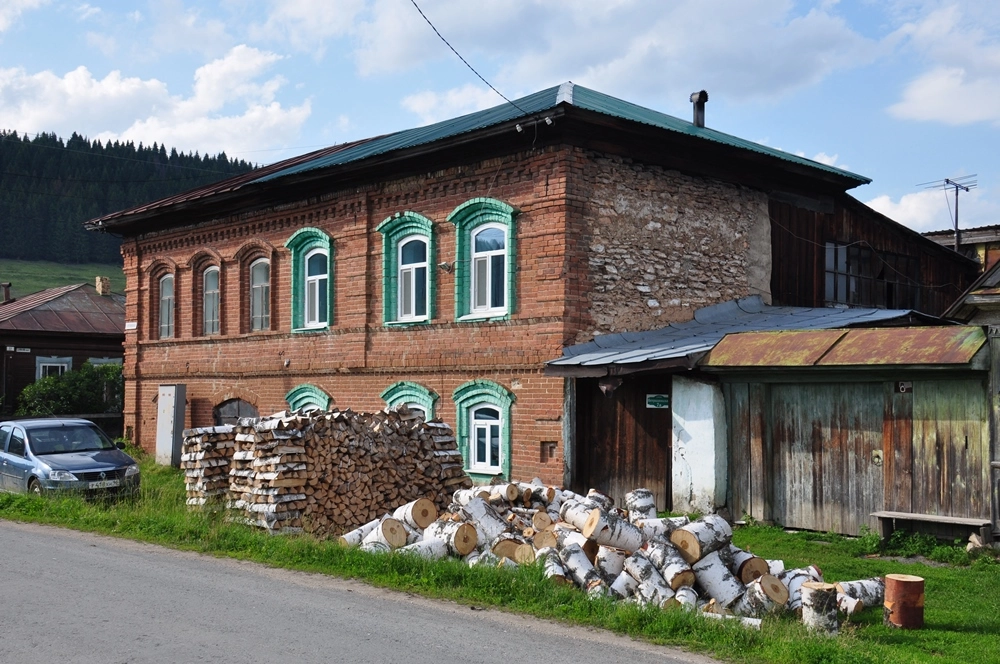 Редкий каменный фасад — но на вид тоже примерно 100-летней давности, примерно как купеческая застройка Красноуфимска.