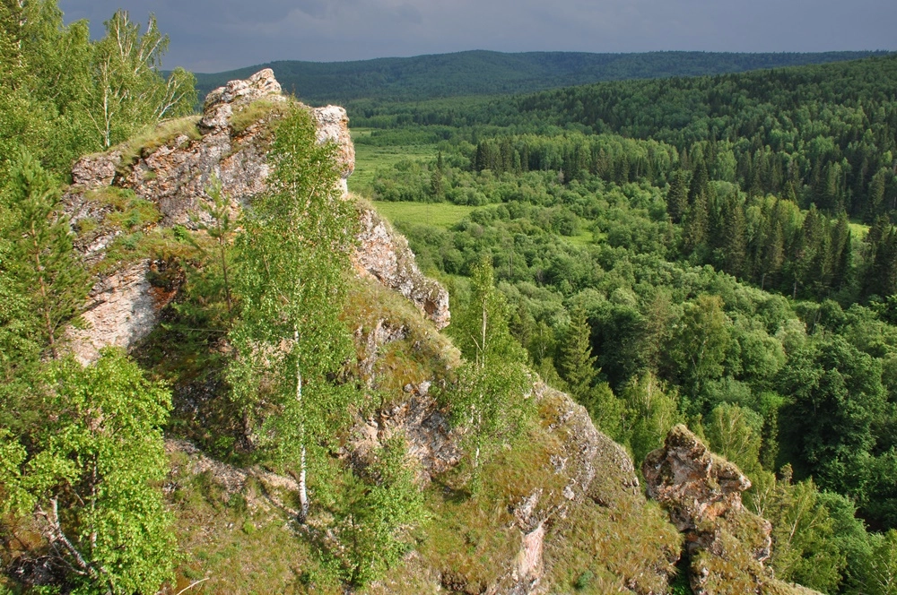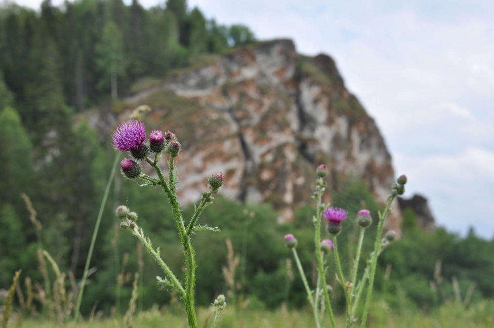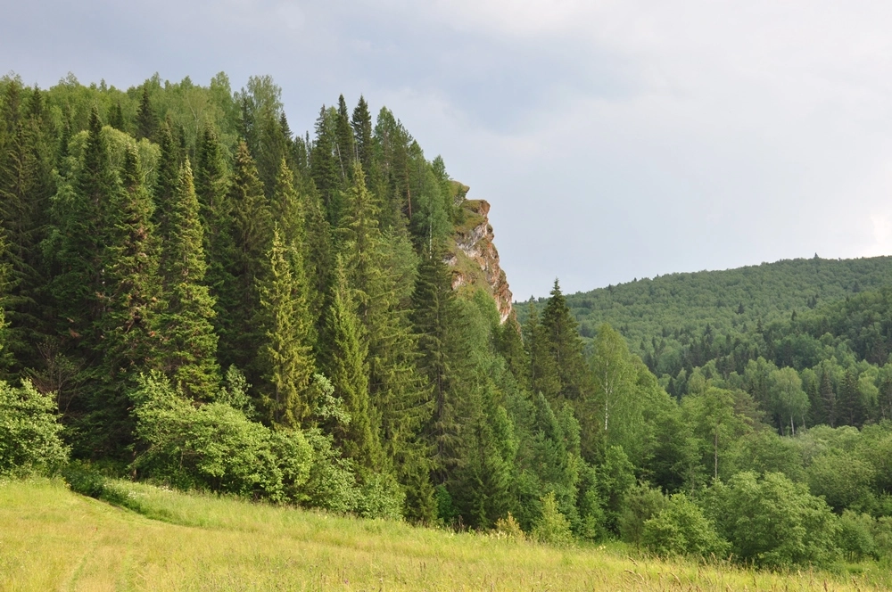 Перед скалой — большая живописная поляна. Лет 40 назад на ней стояла деревня Петуховка в несколько домов. Сейчас ее уже нет.