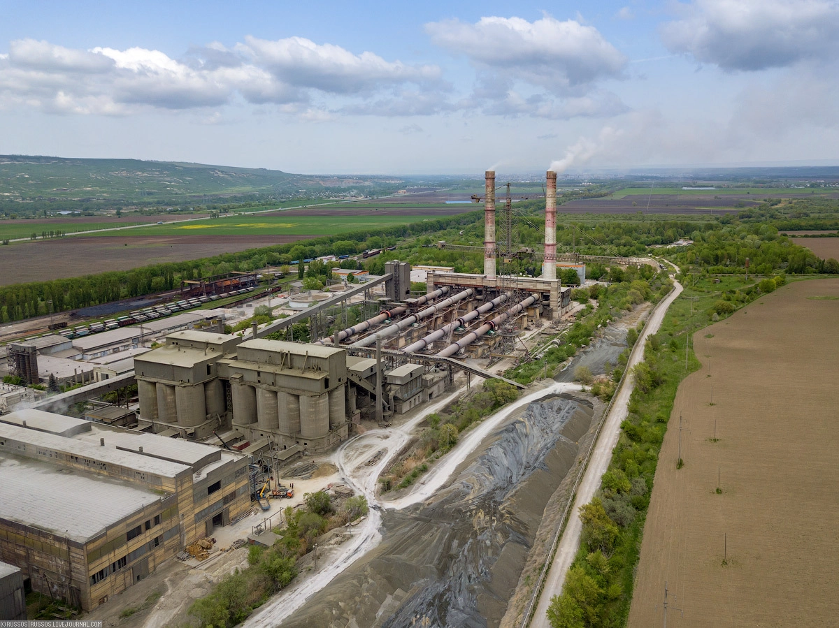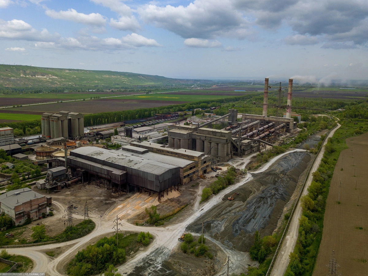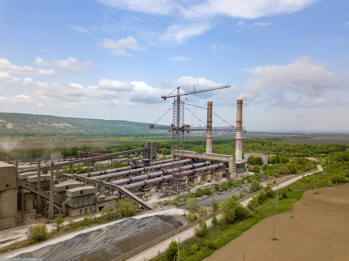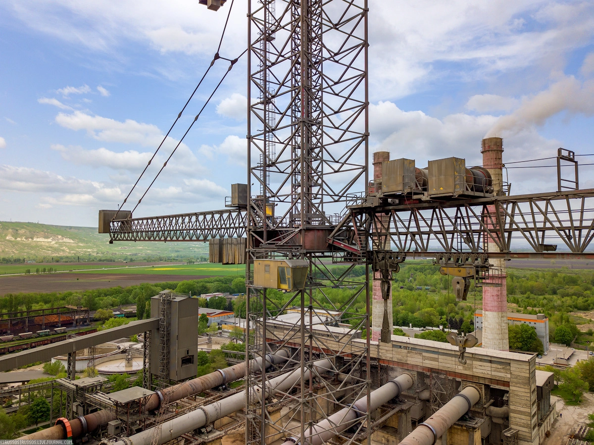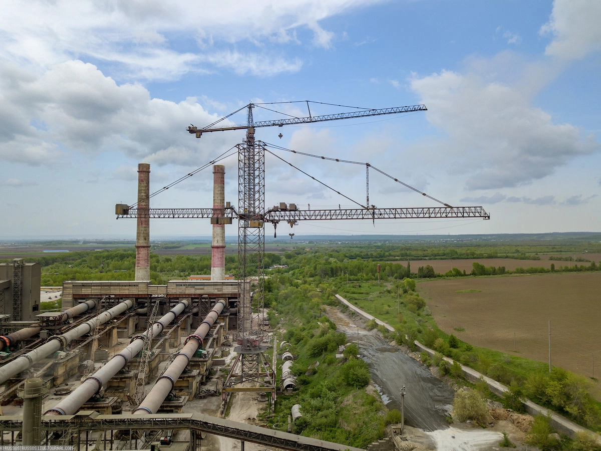 1. Сверху открывается шикарный вид на вращающиеся печи и на кран.