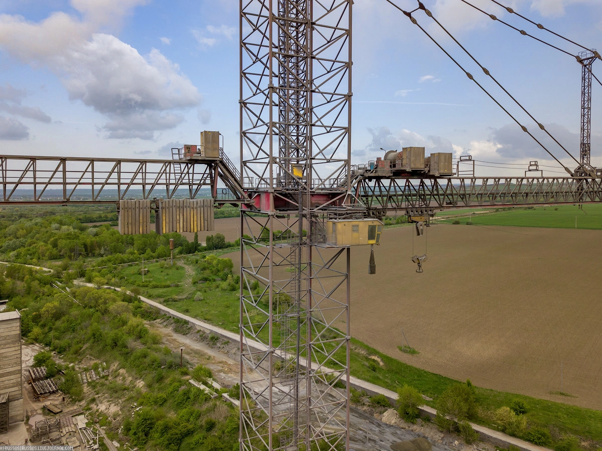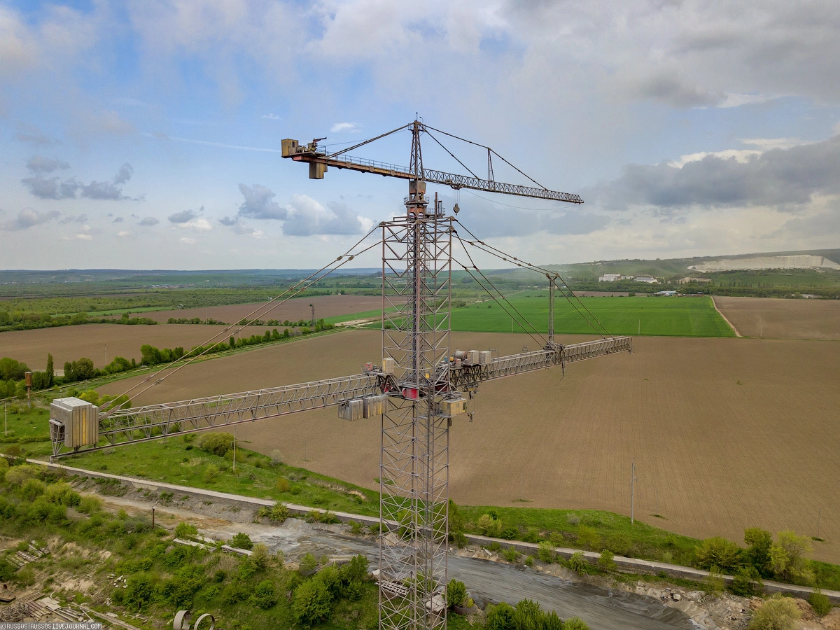 Эти краны получили применение в энергетическом строительстве, в основном, при возведении атомных электростанций, но в районе города Черкесска его смонтировали на цементном заводе. Резко по тормозам, разворот на 180 под возмущенные сигналы участников дорожного движения, а я ищу подъезд и удобную площадку, чтобы поднять дрон. Не снять его просто нельзя.