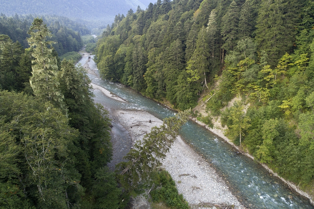 Кавказский заповедник. Девственные горные леса в среднем течении реки Малая Лаба выше кордона Умпырь.