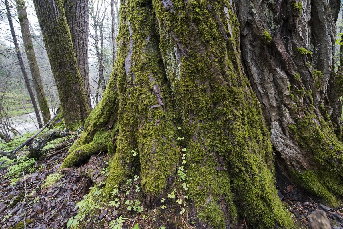 В фотоповествовании о старовозрастных лесах нельзя миновать Дальний Восток, где обитают такие исполины, как тополь Максимовича. Отдельные тополя достигают двухметрового диаметра на высоте груди человека. Чтобы представить размеры этого дерева, приведу факт, что в его дуплах любят устраивать зимние берлоги белогрудые медведи.
