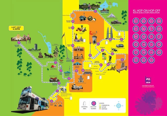 Маршрут по Куала-Лумпуру состоит из 23 остановок. Продолжительность маршрута величина не постоянная, и очень сильно зависит от ситуации на дорогах. В вечернее время есть шанс плотно застрять в пробке. Автобусы ходят с 9 утра до 8 вечера, однако с 7 вечер перестают принимать пассажиров. Предположительный интервал движения 20−30 минут.