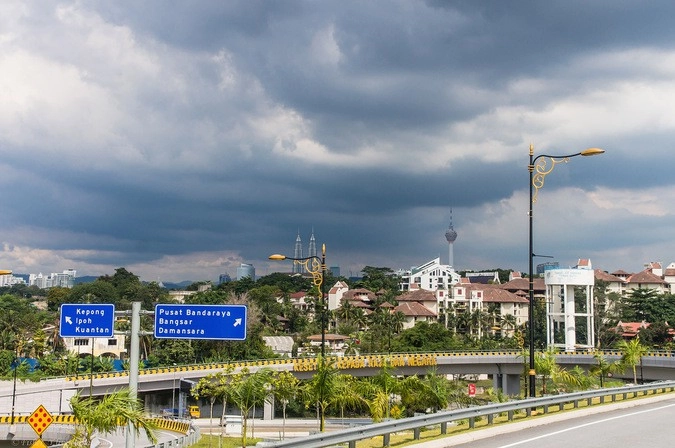 Улица Jalan Sultan Azlan Shah, Вдали Башни Петронас.