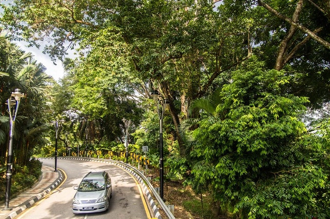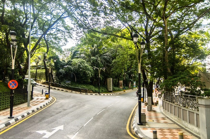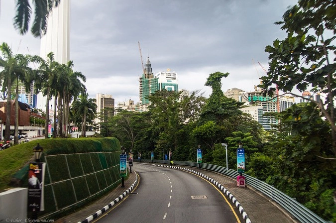 Сама телебашня расположена на холме Bukit Nanas, что означает Ананасовый холм, поэтому дорога ведущая к ней подымается по кругу.