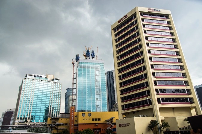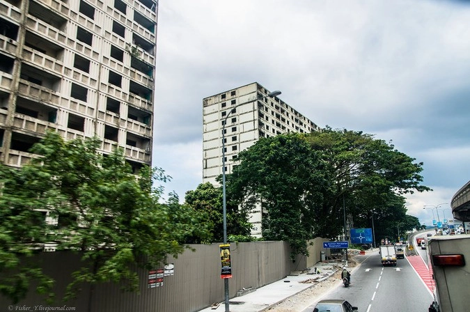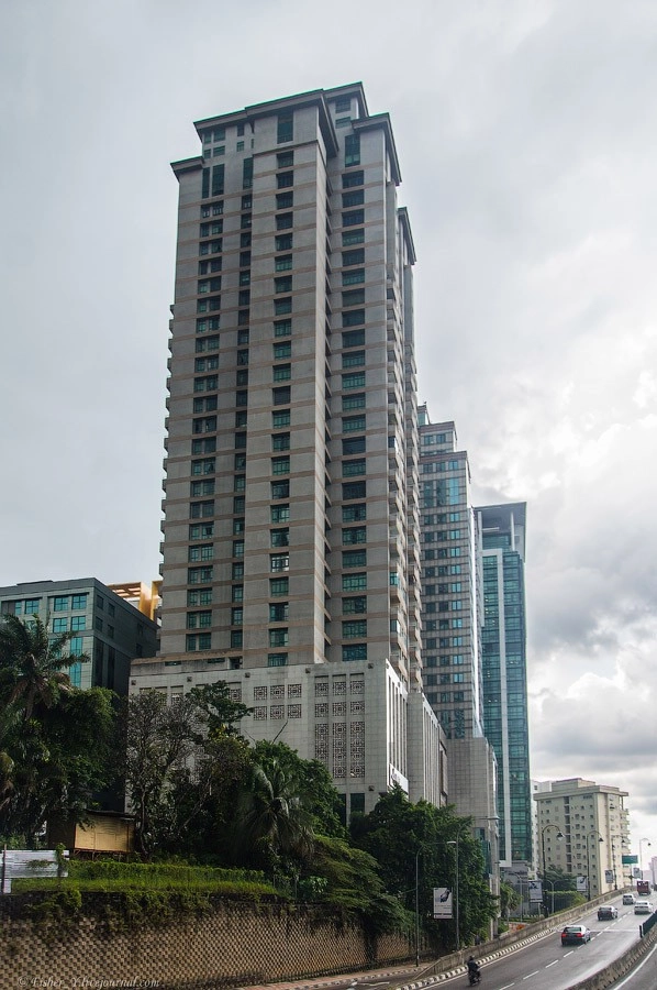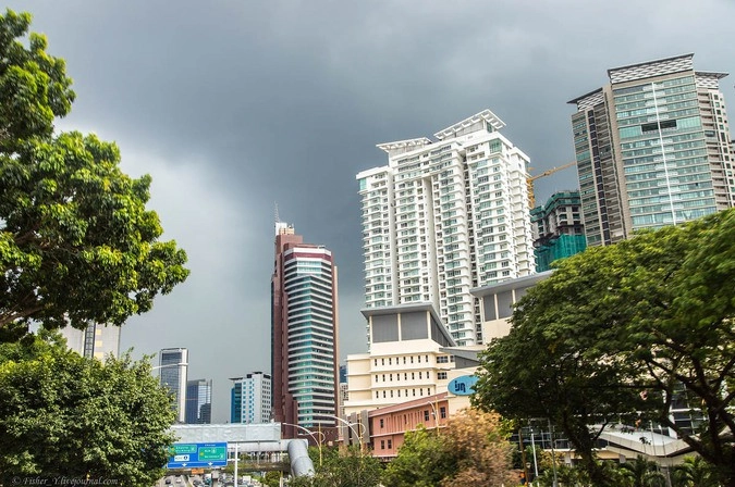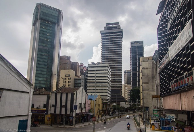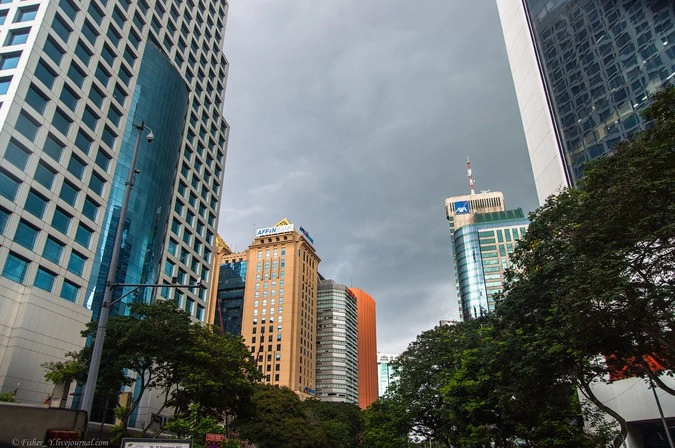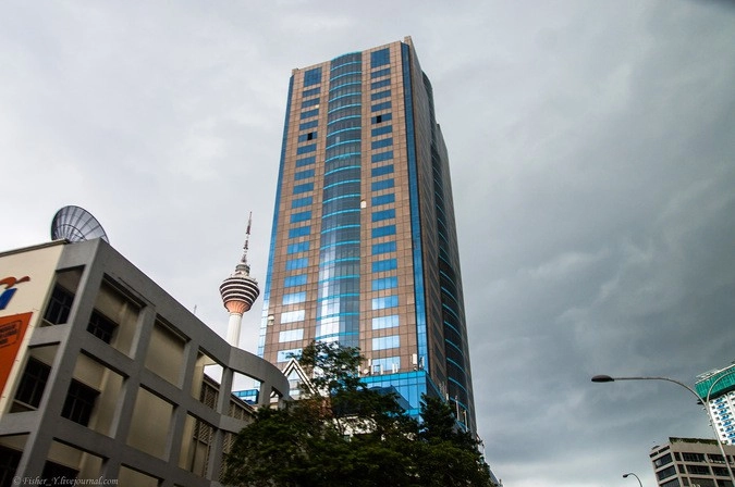 Вон то высокое белое здание вдали, один из первых небоскрёбов Куала-Лумпур, 35 этажный Dayabumi Complex построен в 1984 году.