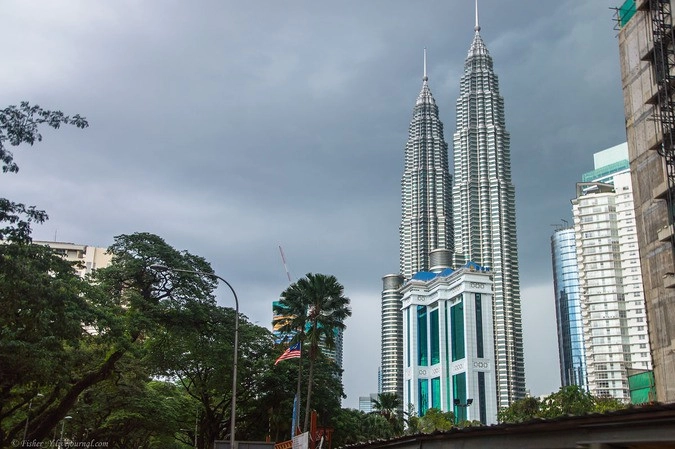 Красивый вид на Петронасы и Menara Park, один из множества офисных центров. Эх вот если бы не мост, то вообще замечательно было…
