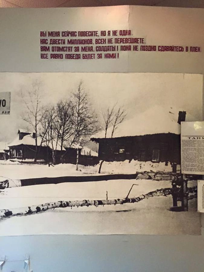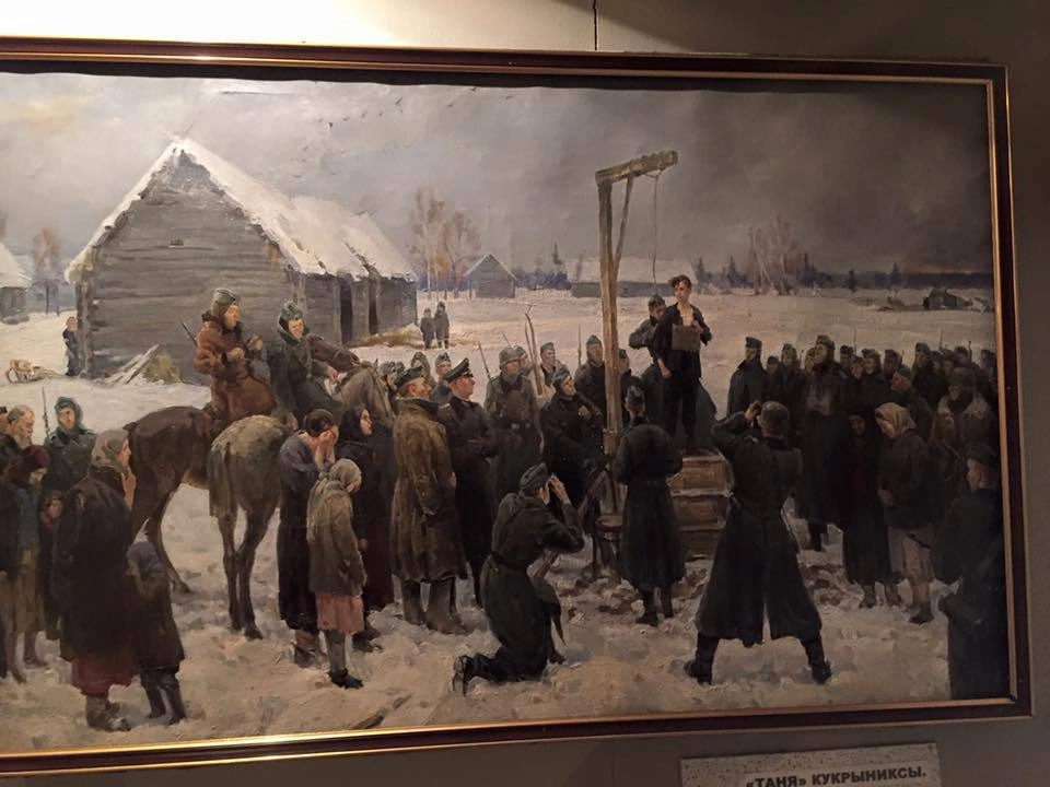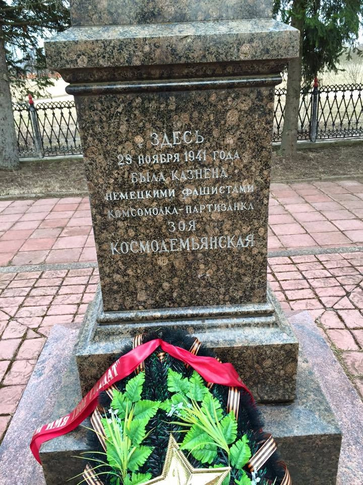 На этом месте Зоя Космодемьянская была повешена. Тело провисело на виселице больше месяца. На Новый 1942 год, пьяные немцы сняли тело партизанки, искололи его штыками, отрезали куски тела.