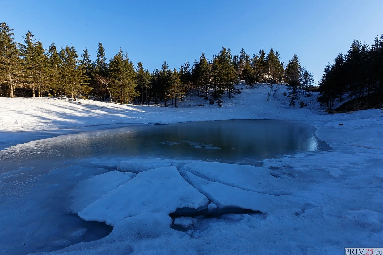 Все наши мысли были заняты предвкушением удивительных красот весенней Ольховой. Эта вершина Алексеевского хребта манила нас с первого дня проекта. В первую очередь своими горными озерами, ведь больше в крае такого не встретишь.