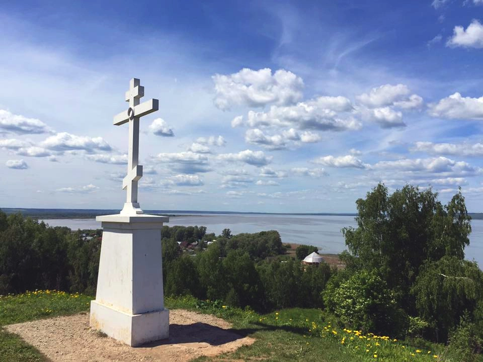Балчуг, с которого открываются виды на озеро Галич. Крест поставили в память о злодействе, которое натворили здесь поляки