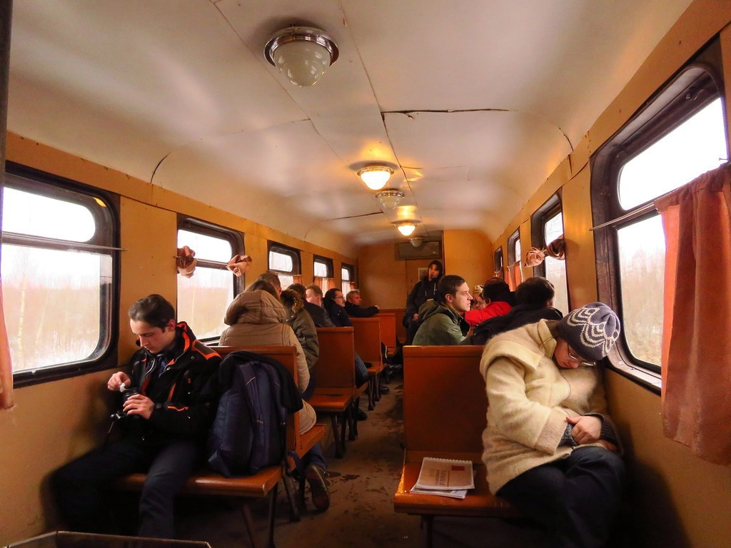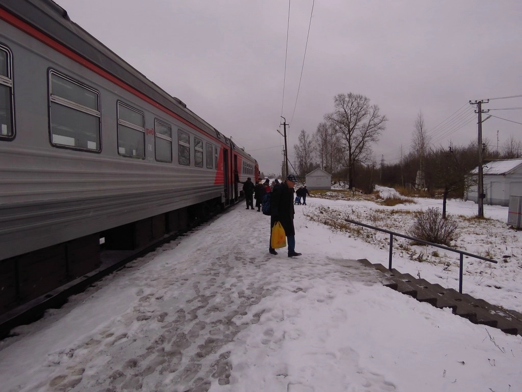 Большая часть нашей транспортной компании поспешила на автобус в Новгород. Туда же собрался направиться и я. Но пока шёл к автобусу, обнаружил дешёвые билеты на поезд из Питера, и прямо, не выходя из сугроба, их и купил. Можно было остаться ещё на пару часов, и уехать обратно на том же дизеле.