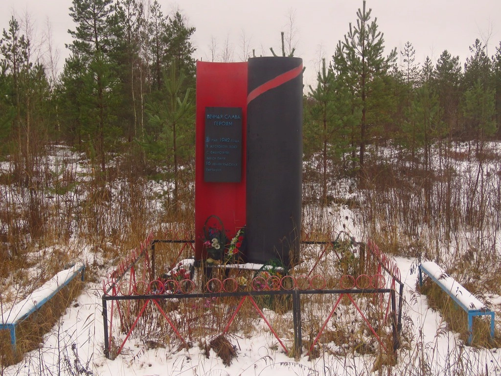 По дороге встречается стела, посвящённая боям ВОВ, которые проходили в этих местах.