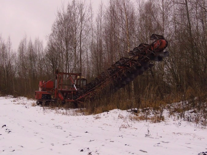 Экскаватор-разрыхлитель. Смягчает торф, чтобы его легче было потом грузить.