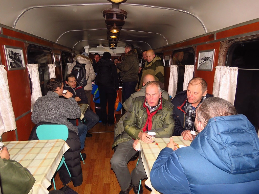 По прибытию на станцию «Музей» или «Пост 4» нас ждал в вагоне-столовой тёплый чай и вкусности.