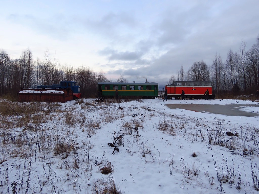 Мы ещё посидели попили чайку, пообщались с музейщиками на разные железнодорожные темы, покатались на «пионерке», а потом музейщики подкинули нас на мотрисе до станции. Вот прикольно, не часто тебя подвозят на узкоколейном транспорте! Ещё три часа на дизеле-электричке, после чего я вышел в Купчино и ещё прокатился, наконец, до вокзале на новомодном быстром 25-м трамвае, что давно уже всё хотел сделать. Впрочем, это уже совсем другая тема.