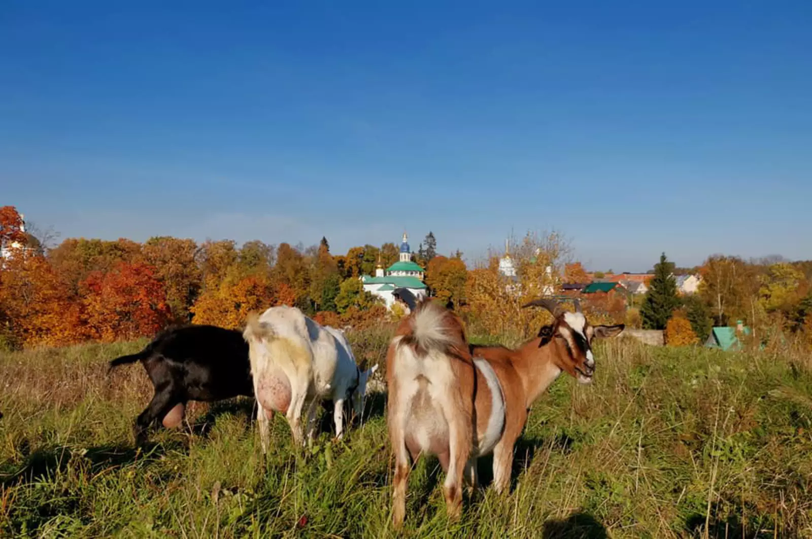 Позади монастыря набожная женщина Маргарита пасла коз, разговорились, пока коза Белобочка выпрашивала у меня угощенье, тыкаясь мордой в мои руки. Узнала, что мы из Сергиева Посада и говорит: