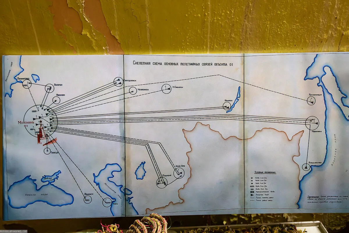 В сооружении располагались телефонные и телеграфные станции, аппаратура уплотнения каналов, оборудование для контроля целостности кабелей, пункт управления, вспомогательные помещения, а также системы жизнеобеспечения: фильтро-вентиляционные установки, артезианские скважины, аккумуляторная, системы кондиционирования воздуха, запасы воды, насосные, санузлы и собственная дизельная электростанция.