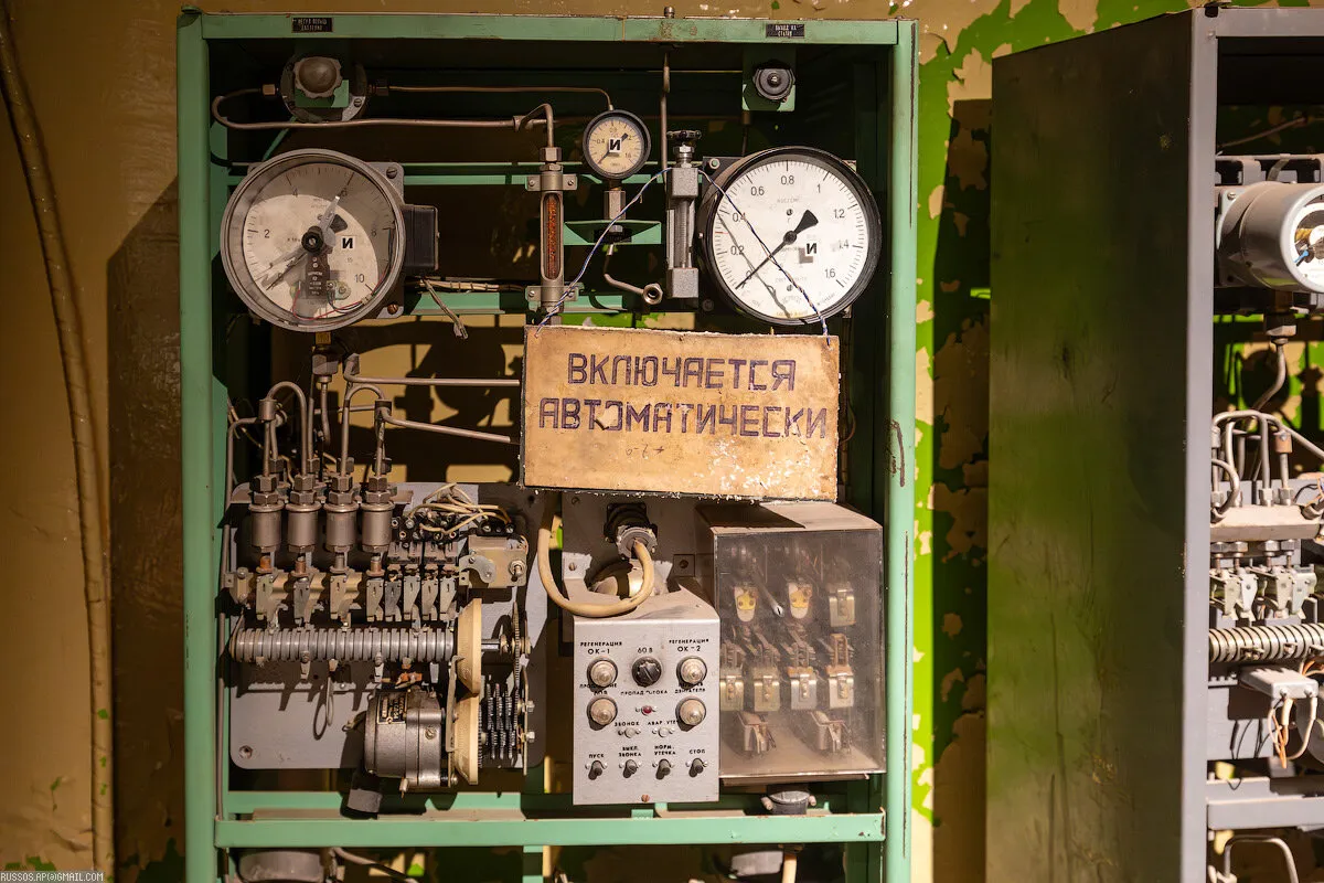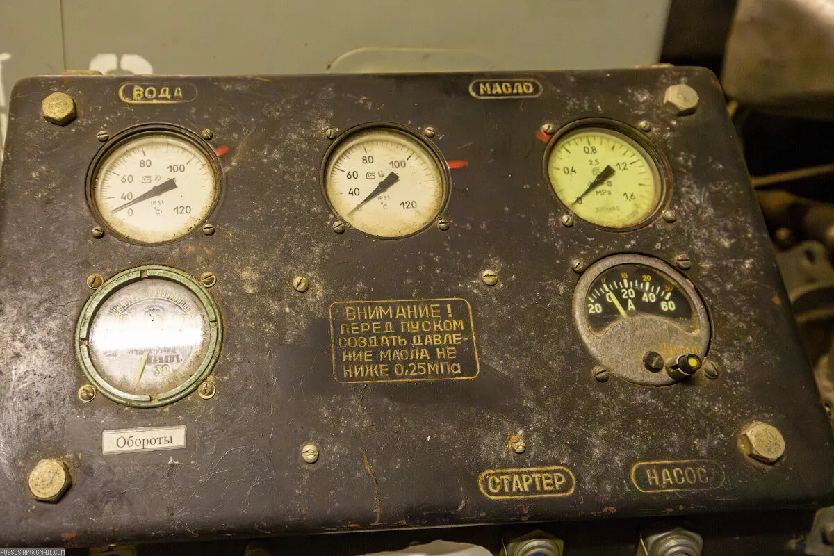 Пульт управления дизелем. Их запуск был полностью автоматизирован и происходил самостоятельно при прекращении подачи напряжения. Но, конечно, можно было запускать и из помещения ДЭС,