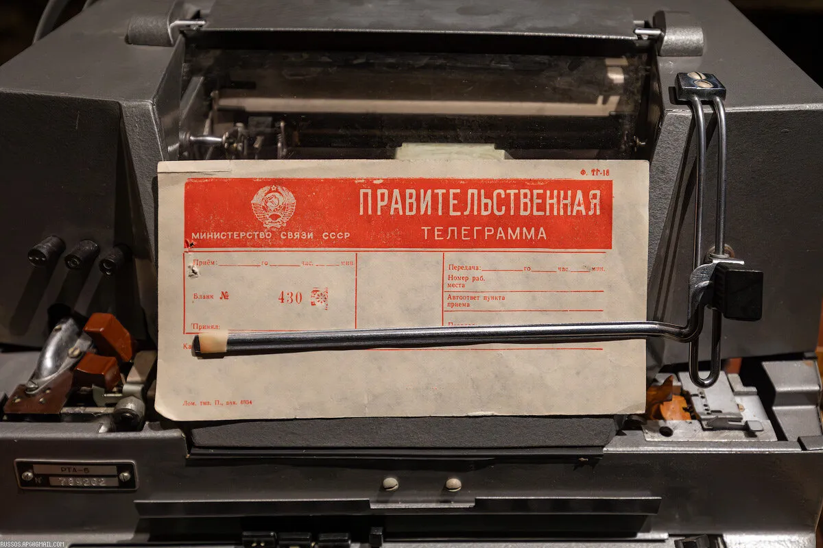 Вам телеграмма! На этот квиток наклеивали ленту, которую выдала аппарат. Квиток лежит редчайшем рулонном телеграфном аппарате РТА-6 «Риони»