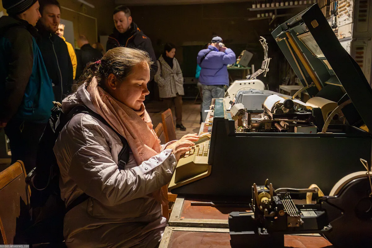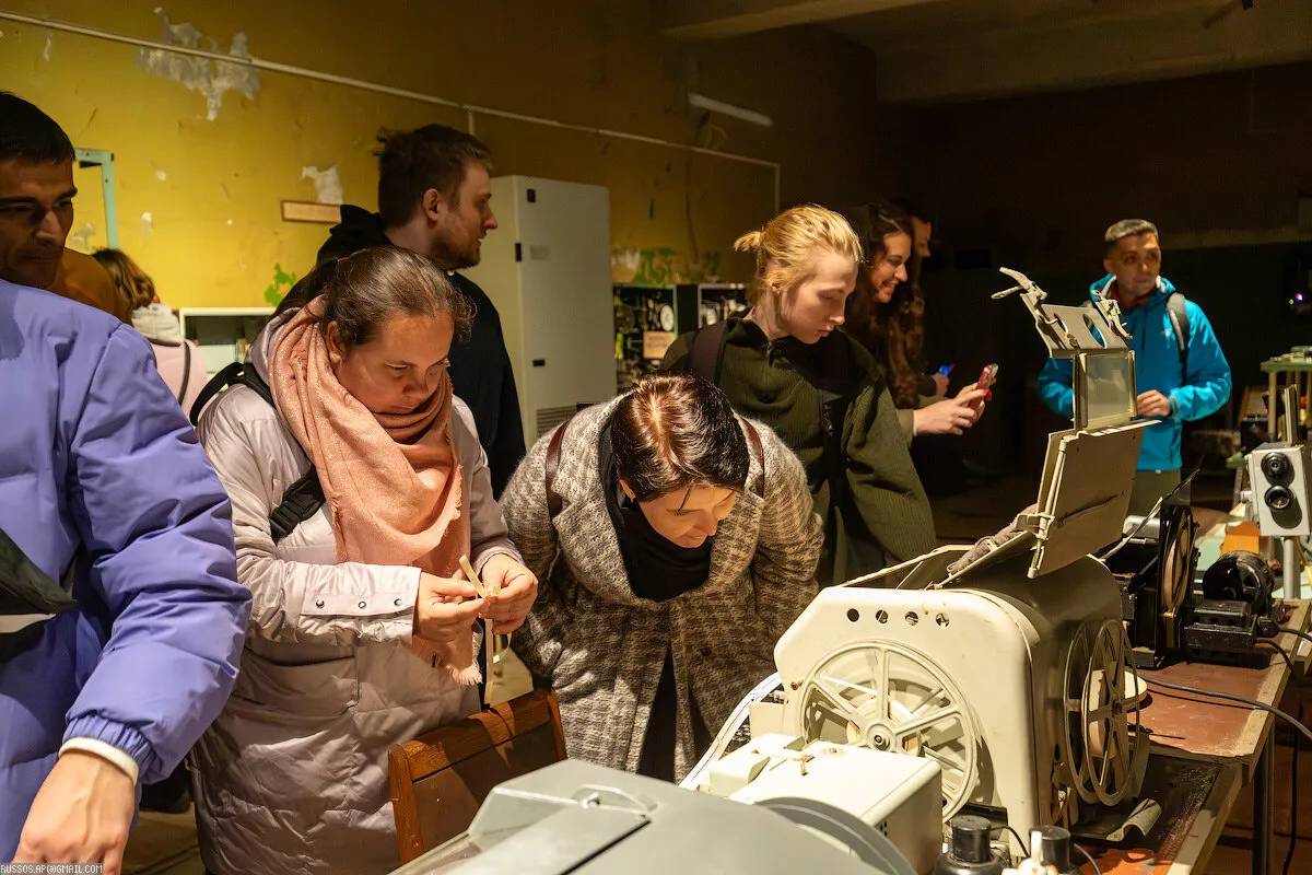 Сбор группы в самом большом зале — это автозал. Здесь располагалось оборудование автоматической телефонной станции.