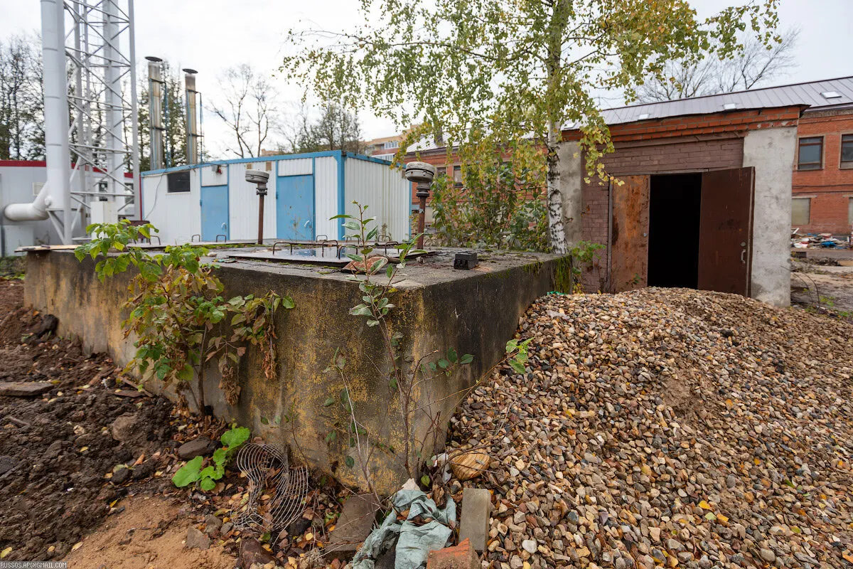 Специальный ходок для замены дизелей. Проем в ДЭС, судя по всему, просто закладывался блоками, так как такая замена вещь очень и очень редкая. Насколько я понимаю в жизни объекта такое случилось ровно один раз — в середине 90-х годов. Когда дизели Д-6 заменили на те, которые представлены на фотографиях. Желтый бак — это аварийны бак для СЛИВА топлива из расходных баков в случае повреждения и утечки топлива.