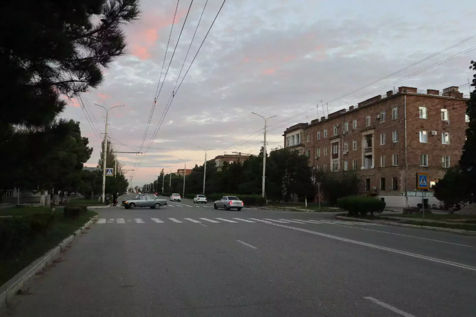 Перпендикулярная ей улица Сулеймана Стальского — главный бульвар города, тоже вся в зелени. Здесь уже высажены, в основном, хвойные породы.