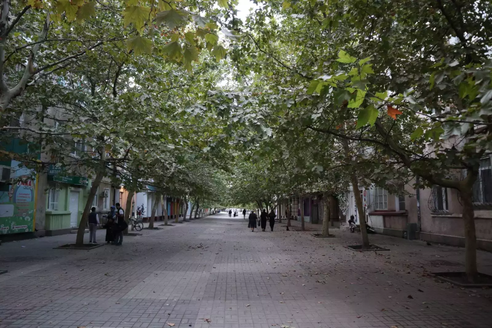 Ещё параллельно Ленина идёт пешеходная улица Советская. Просто потрясло неистово как тут высадили деревья так, что они практически крышу над этой улицей создают.