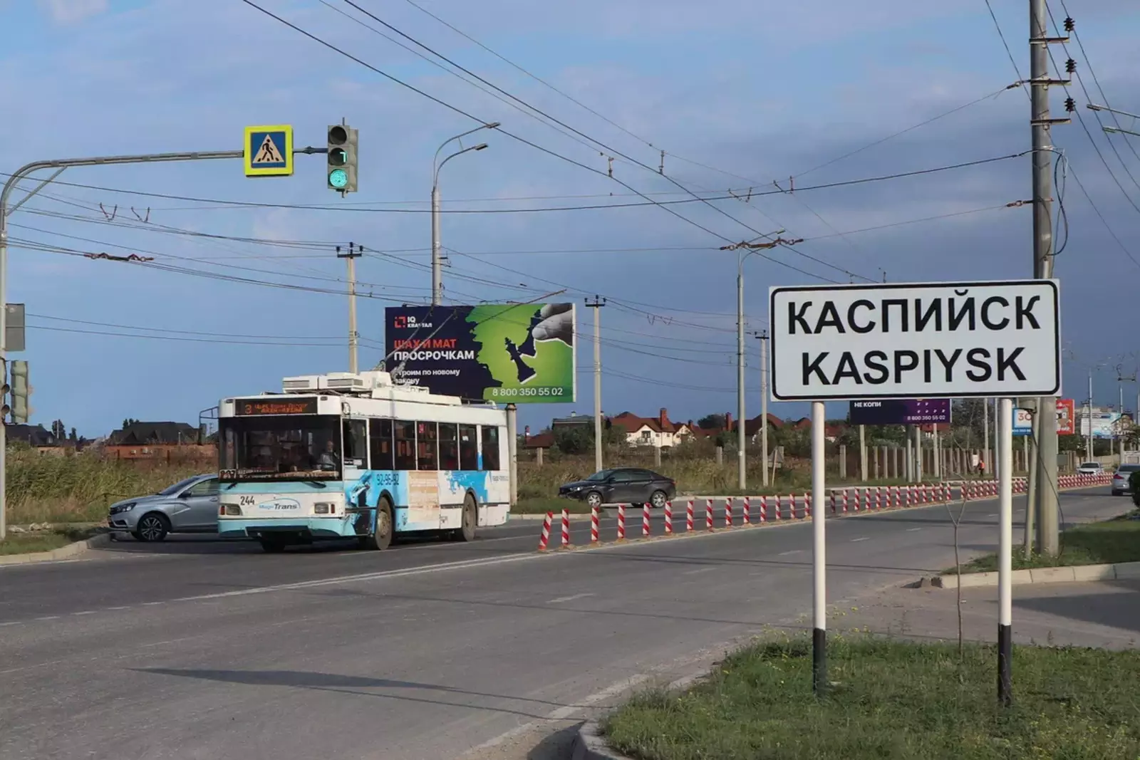 Вот такой приятный город Каспийск! Заезжайте сюда, вот, можно даже на троллейбусе теперь! Если будете летом, ещё и искупаться сможете!
