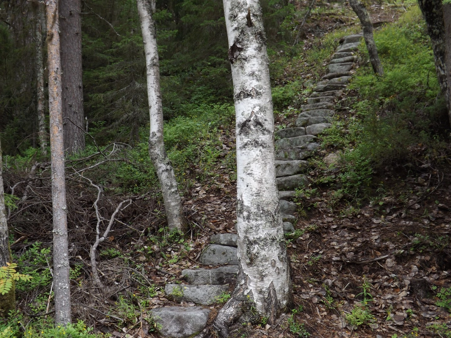 Каменная лестница — это просто лестница, хотя вряд ли кто сейчас по ней поднимается: в стороне есть дорога. А с деревянной лестницей связана местная легенда: мол, каждый сделанный по ней шаг счищает с человека один земной грех — главное, верно сосчитать все ступеньки. Вот и превращается спуск с горы в аттракцион: кто ни идёт, тот тщательно считает.