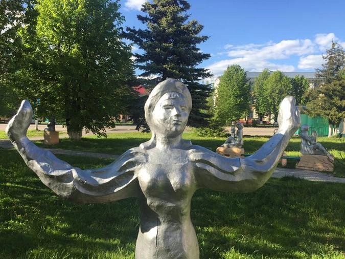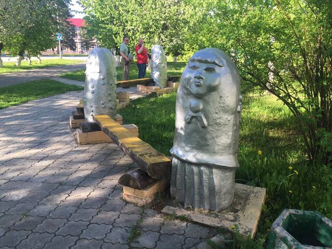 Не знаю, в честь нее или нет, но у бывшей школы стоят футуристические фигуры баб и других неизвестных созданий, выполненных в гипсе. Еще в Буе агитировал за себя на выборах Навальный пару лет назад, но провалился и здесь.