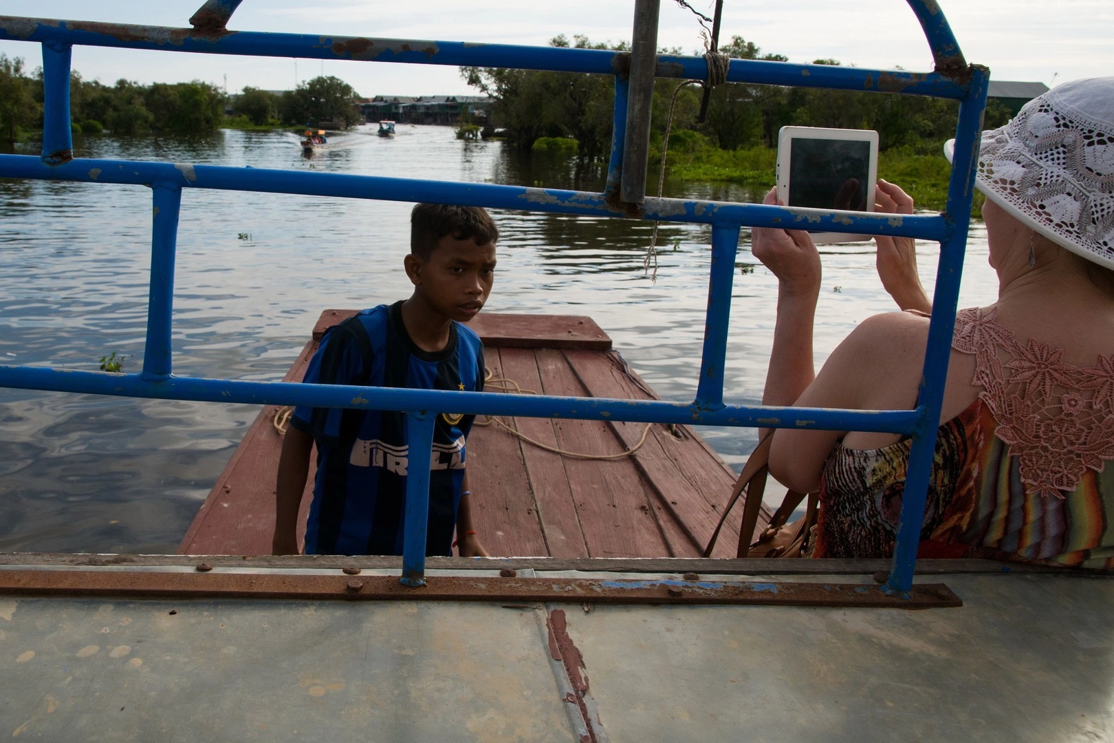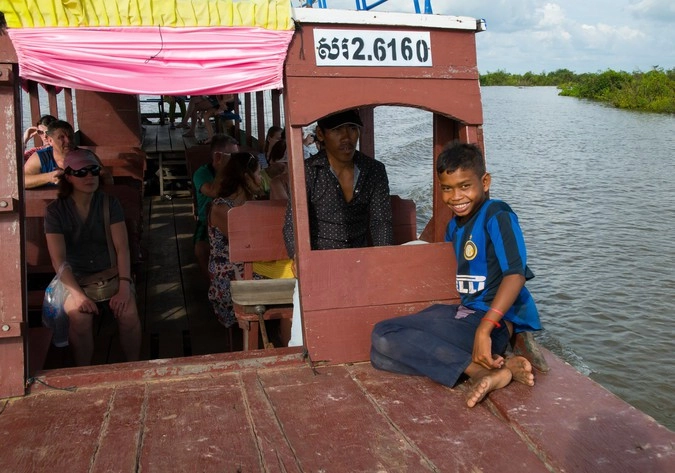 Сегодняшний фотоочерк о маленьком Самнанге, который помогает своему отцу катать на лодке туристов по озеру Тонлесап.