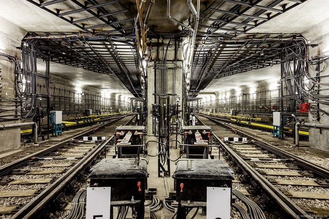 Обычно по одной стене тоннеля идет «низкая сторона» с напряжением 220 и 127 В, путейские ящики для обслуживающего персонала с розетками для всяких болгарок, автоматическая телемеханика движения поездов, водопровод, оптоволокно, система звукового оповещения. С «высокой стороны», где проходит контактный рельс, идут кабели большего диаметра. На этой стороне также встречаются путейские ящики, но уже на 380 В для более серьезного оборудования, которое обычно прикатывают на тележках — например, шлифовальный станок или миксер. Сверху «под потолком» идет радиосвязь машинистов. Снизу лоток для сбора воды.