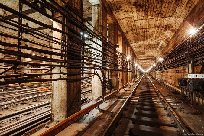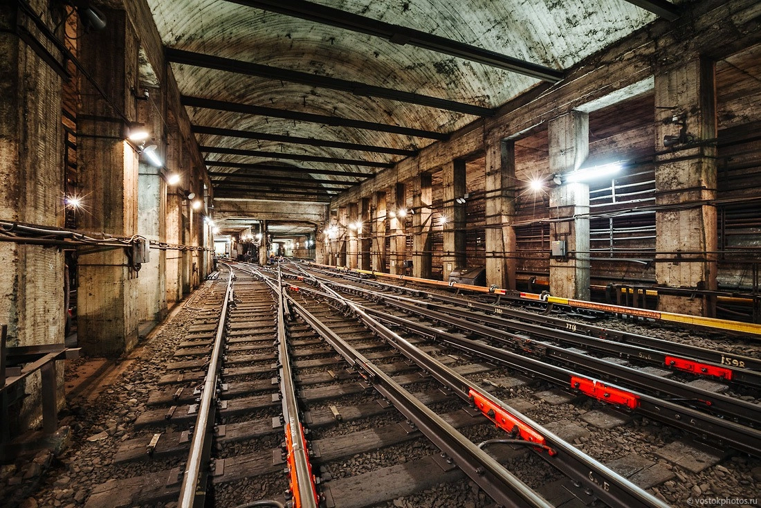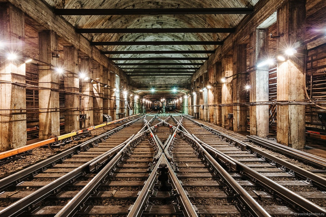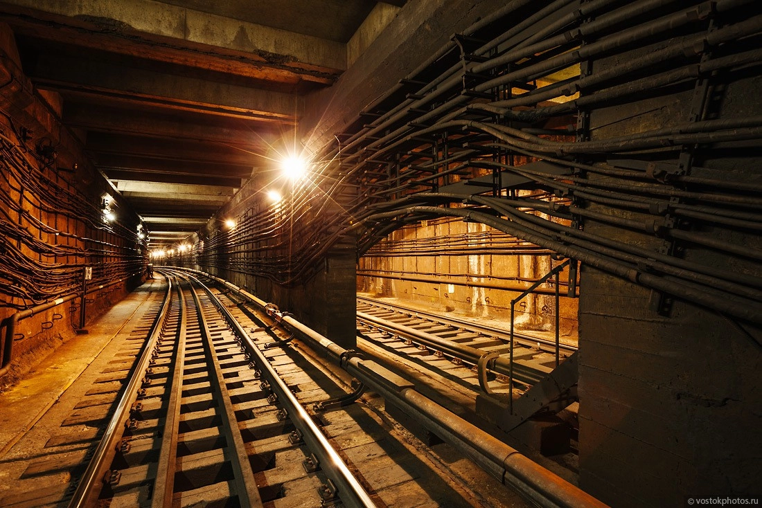 Это же окно, что и на предыдущей фотографии. Мало кто подозревает, какие порой большие пространства прячутся под платформой станции.