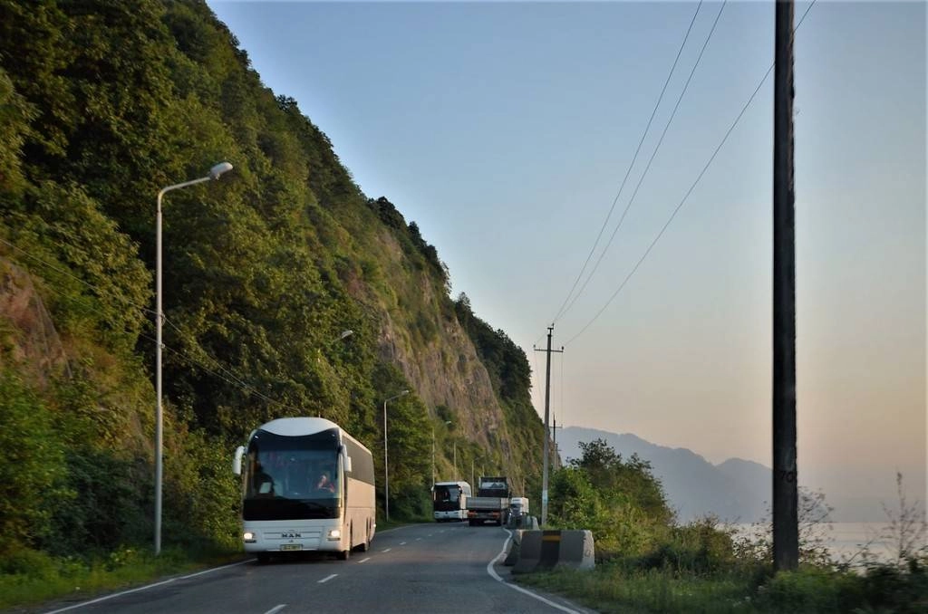 Бесконечный поток рейсовых автобусов, связывающих Грузию и Турцию.