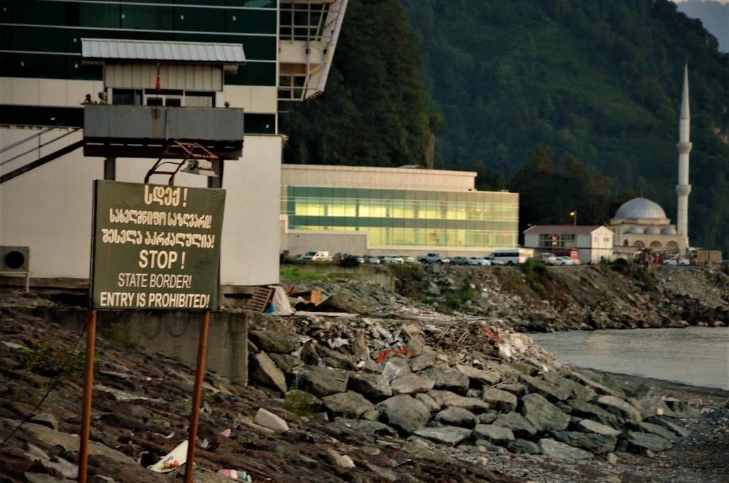 Перед самым пограничным терминалом мы поворачиваем влево и поднимаемся вверх, это село Сарпи.
