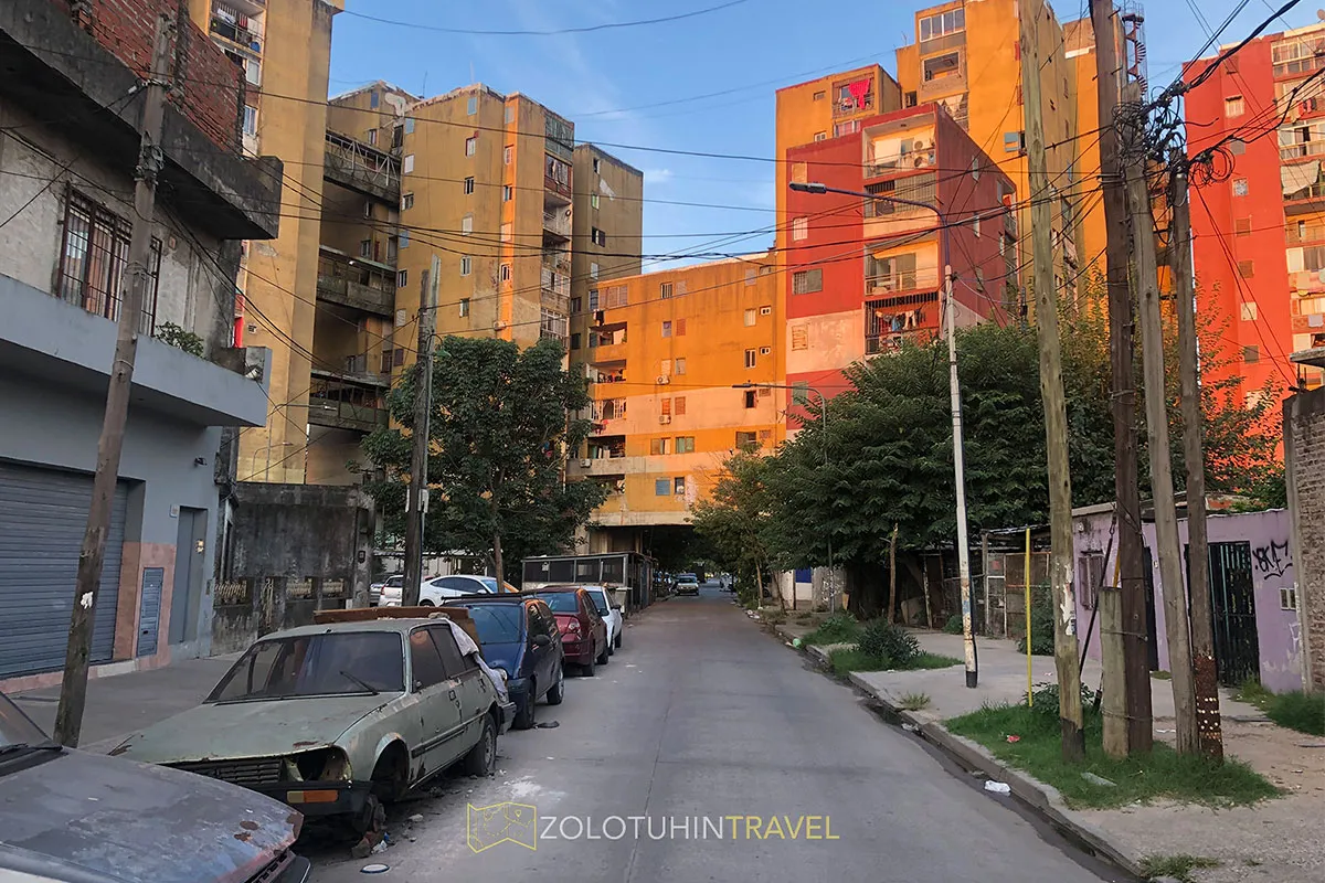 Ехать из центра Буэнос-Айреса час. На входе в район стоят военные. Спросил их, опасно ли внутри, сказали — очень. Сами военные просто так внутрь не заходят, только проверяют въезжающие машины. Внутрь — только во время спецопераций и перестрелок с бандитами (такое периодически случается).