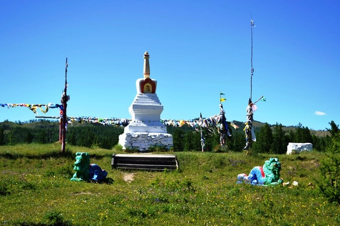 У тувинцев вообще много «священных мест». Субурганы стоят на каждом подъеме практически. Вяжут ленточки, а то и приносят жертвы.