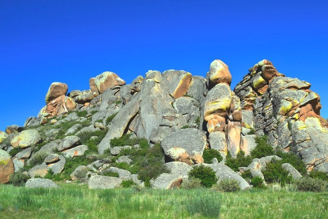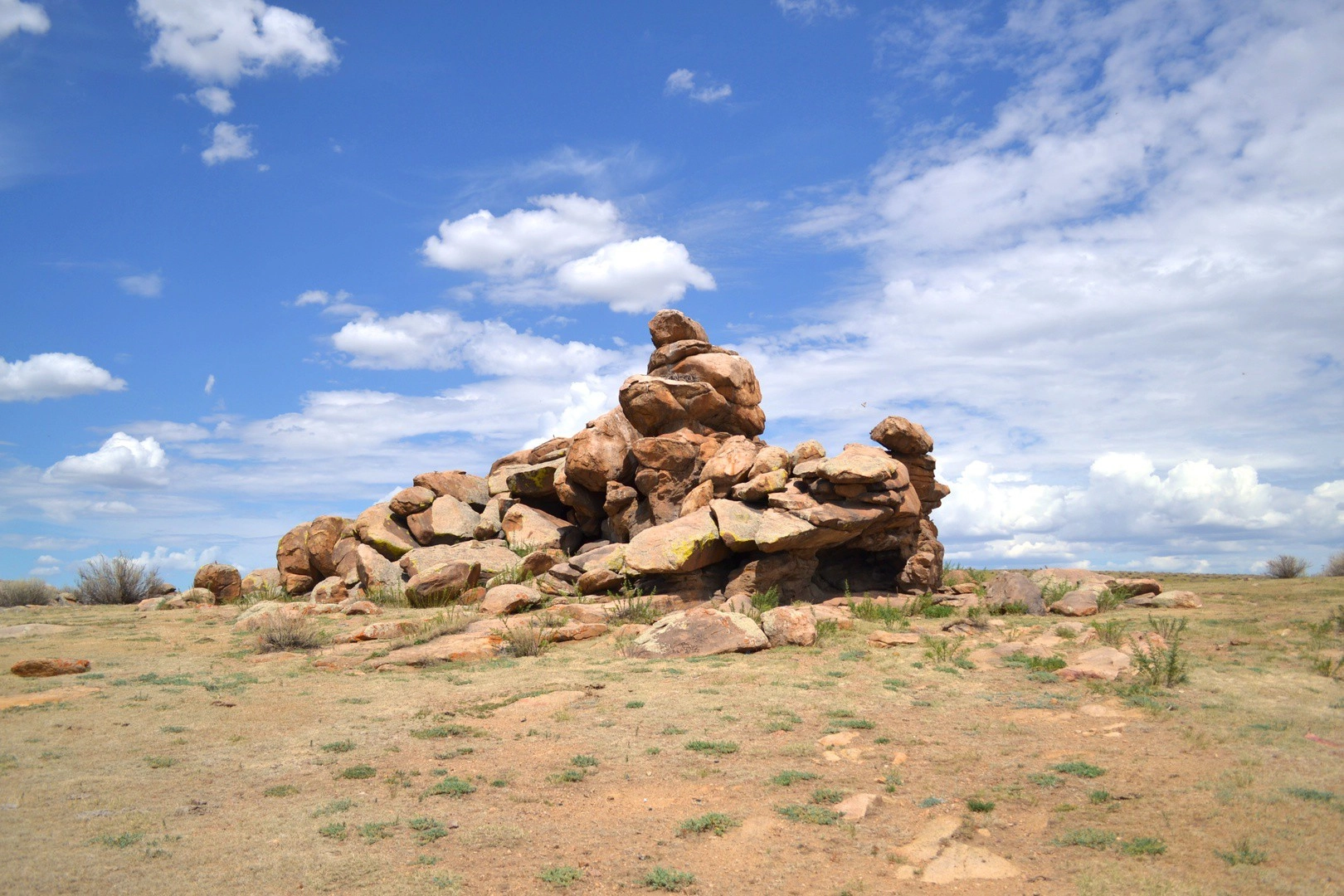 «Священная» гора Кара-Хая. По одной из легенд — это посланный охранять рубежи державы Чингисхана коршун, который, ослушавшись господина присел отдохнуть и окаменел. Теперь он, якобы, мистически охраняет покой степи