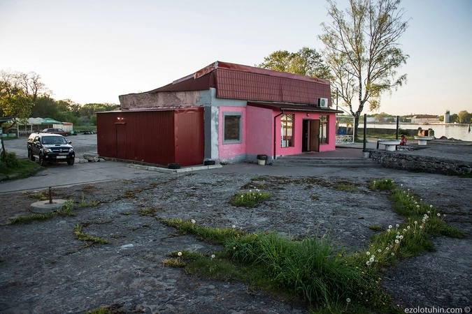 Нечто похожее на магазин, конечно, есть, прямо у переправы, но он рассчитан скорее на туристов, с ценами гораздо выше городских.