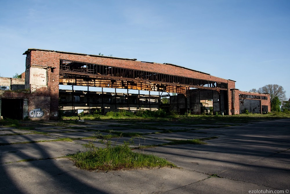 Буквально сразу же начинают попадаться какие-то заброшенные ангары. Подобное можно встретить где угодно, но у этих особо уникальная история, когда-то это была современная авиабаза, сперва немецкая, затем советская.