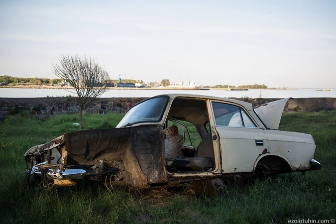 Вся «жилая» часть косы забросана каким-то заглохшим транспортом.