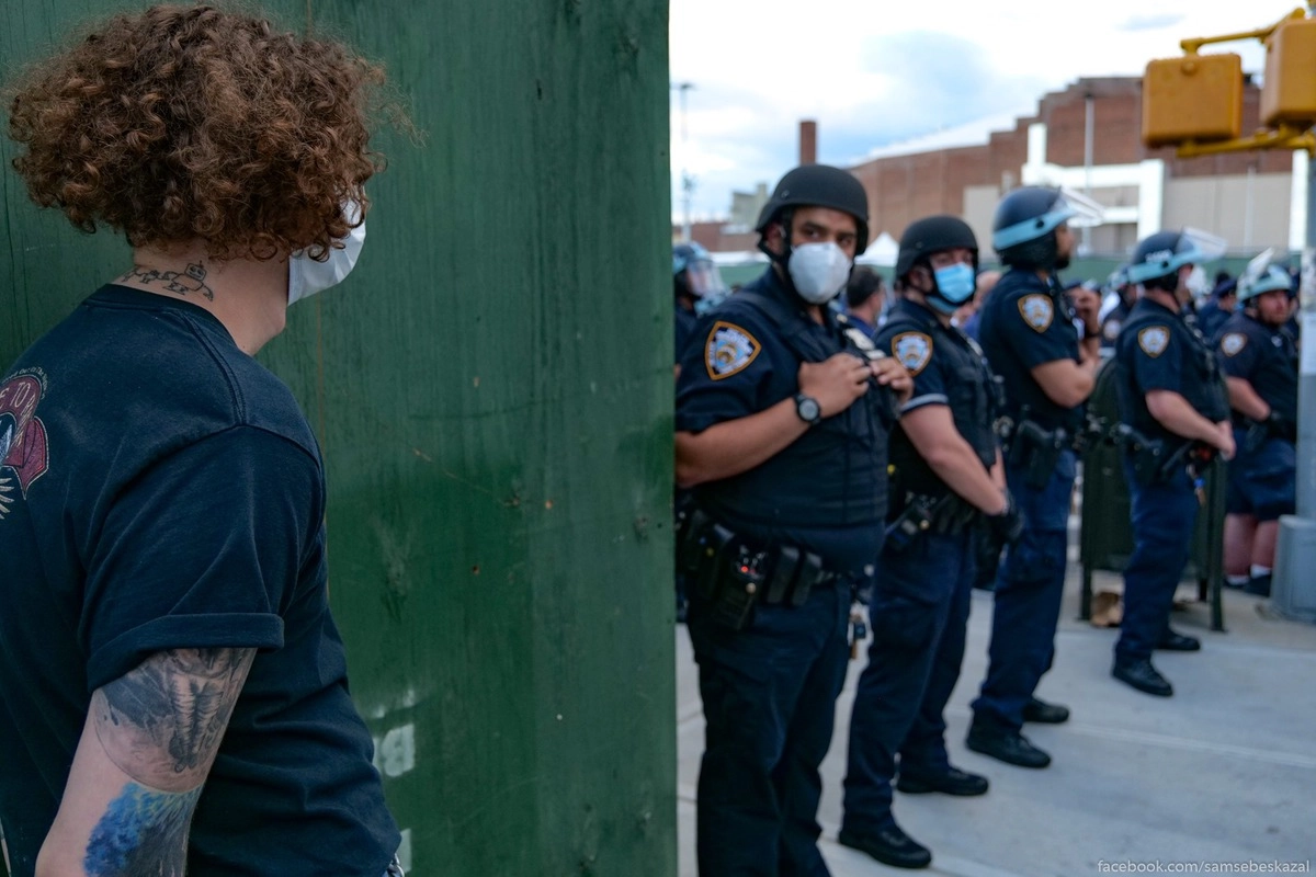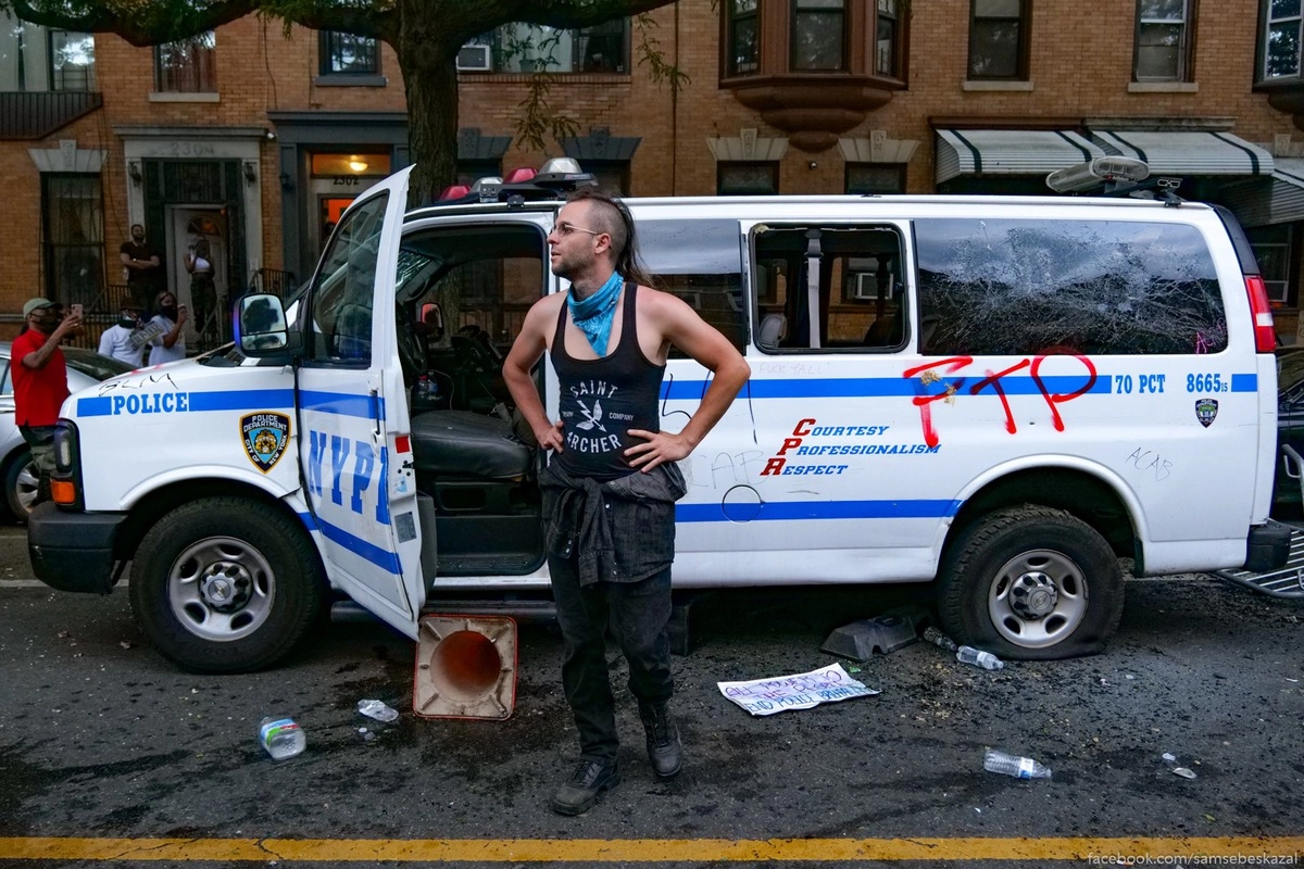Еще вчера жители Нью-Йорка благодарили городских служащих, в том числе и полицию, за то что те находятся на передовой борьбы с вирусом, сегодня же про вирус все забыли и кажется, что некоторые из горожан готовы разорвать копов на части. От любви до ненависти оказался всего один шаг. Тут и накопившиеся за много лет проблемы с полицейским насилием в стране, и длительное политическое противостояние, которое только обострилось после выборов Трампа, и банальная скука и безделье после длительного сидения дома. В акциях участвует в основном молодежь. Тут и афро-американцы, и феминистки, и хипстеры, и девочки-припевочки, которые ходят и разрисовывают стены и полицейские машины из баллончиков.