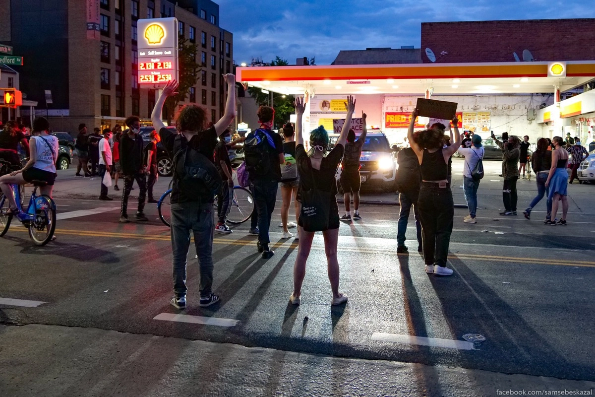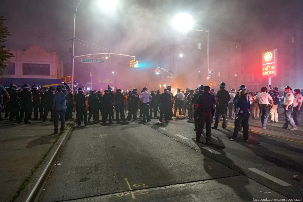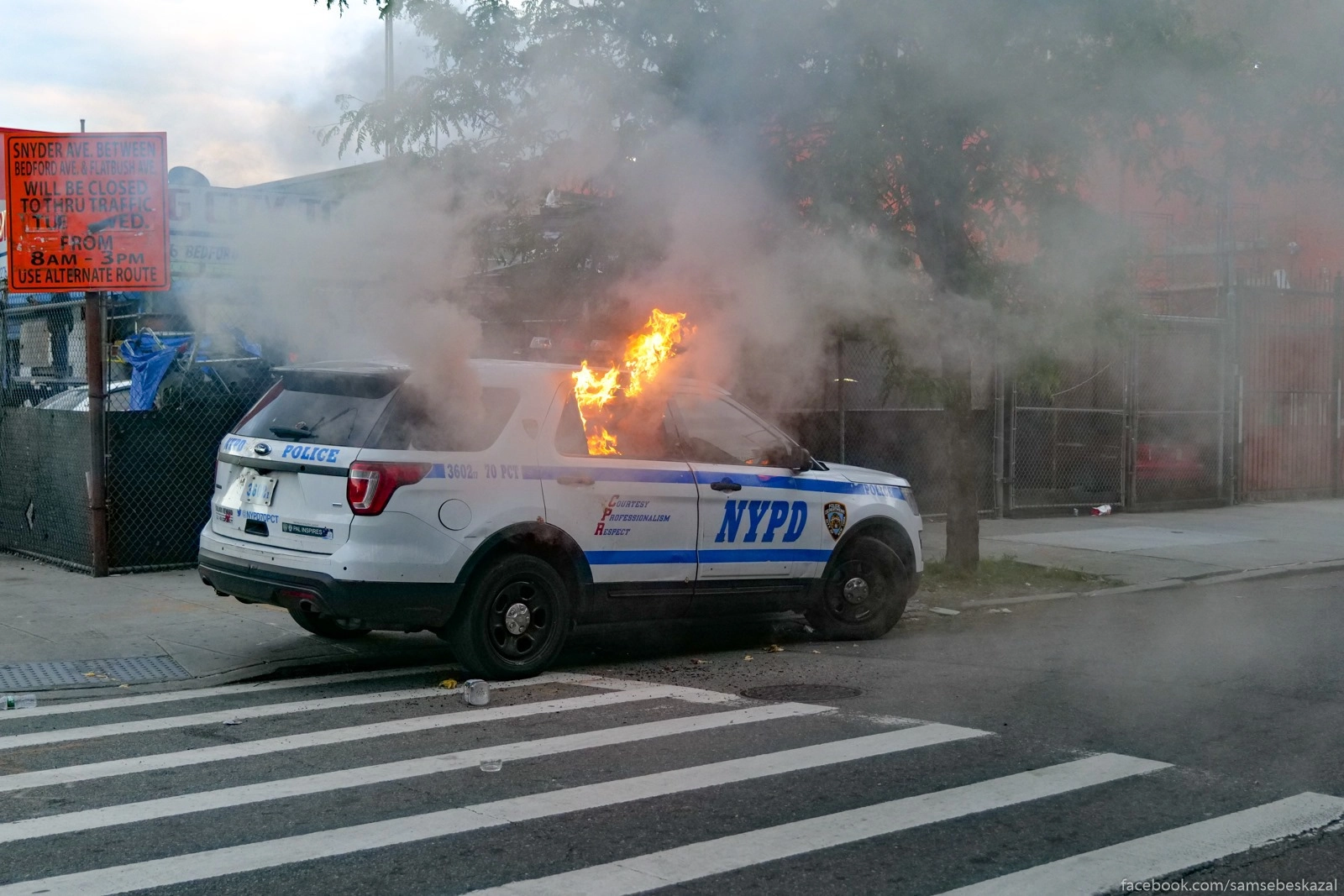 Я поехал посмотреть на манифестацию в Бруклине и на мои глазах мирный протест за несколько часов превратился в настоящее побоище с поджогами и пострадавшими. Пока целью протестующих являются только копы, но уровень агрессии и злобы такой, что все очень скоро может перейти к куда более серьезным вещам. Плюс такие события очень удобно прикрывают банальные грабежи и разбои и есть те, кто только и ждут подходящего момента.