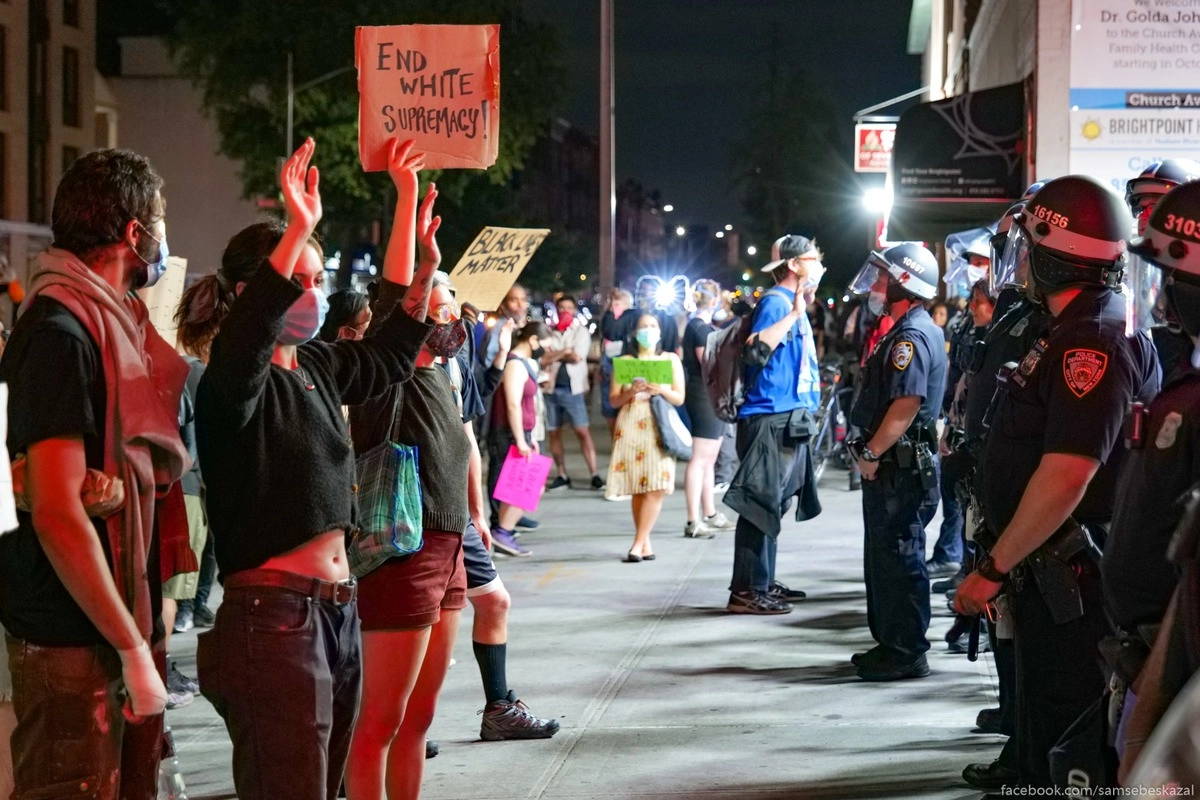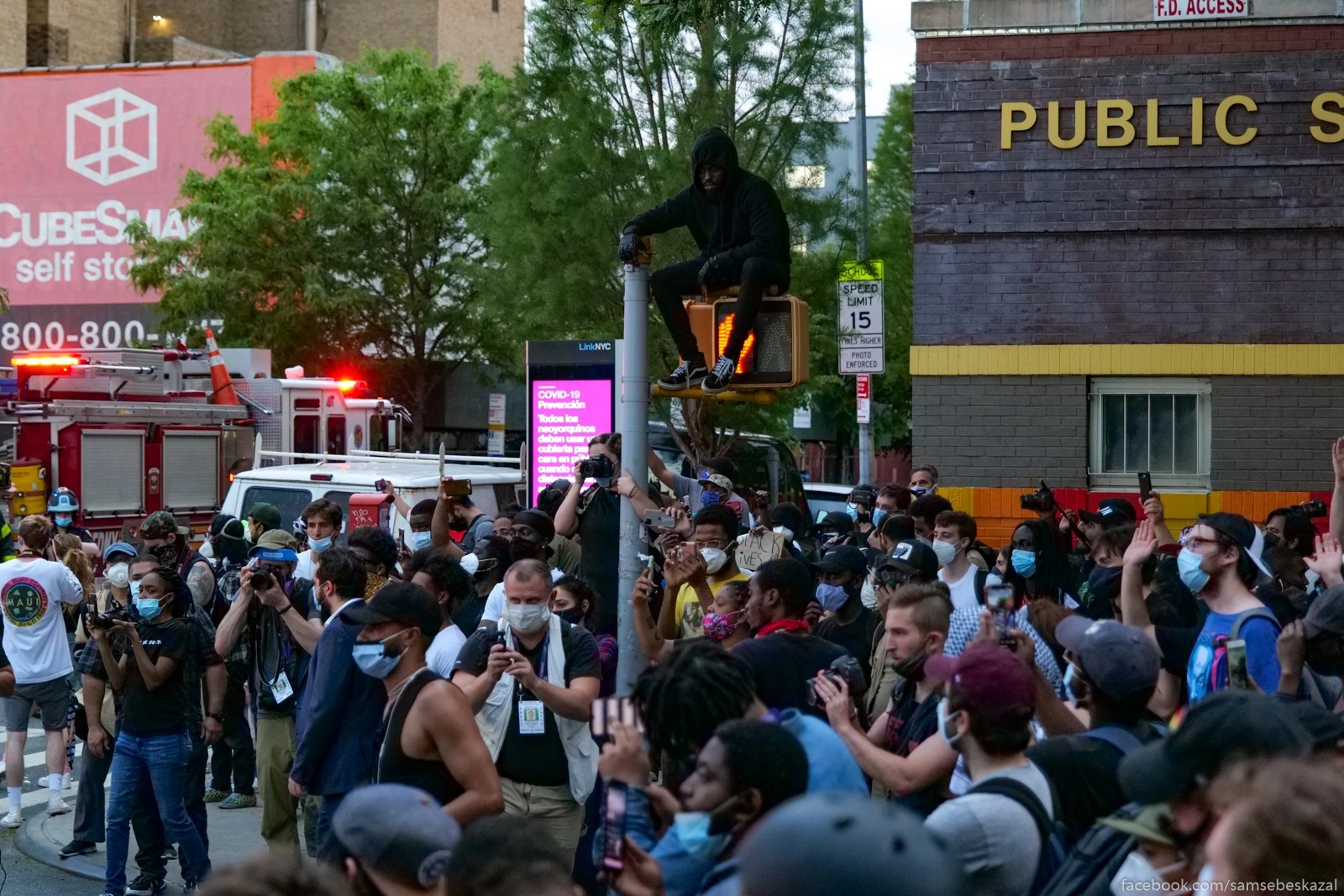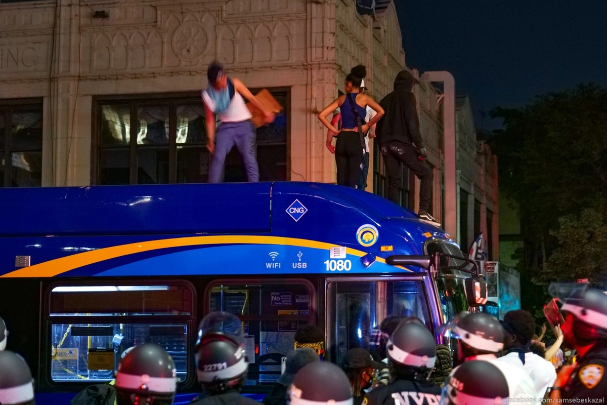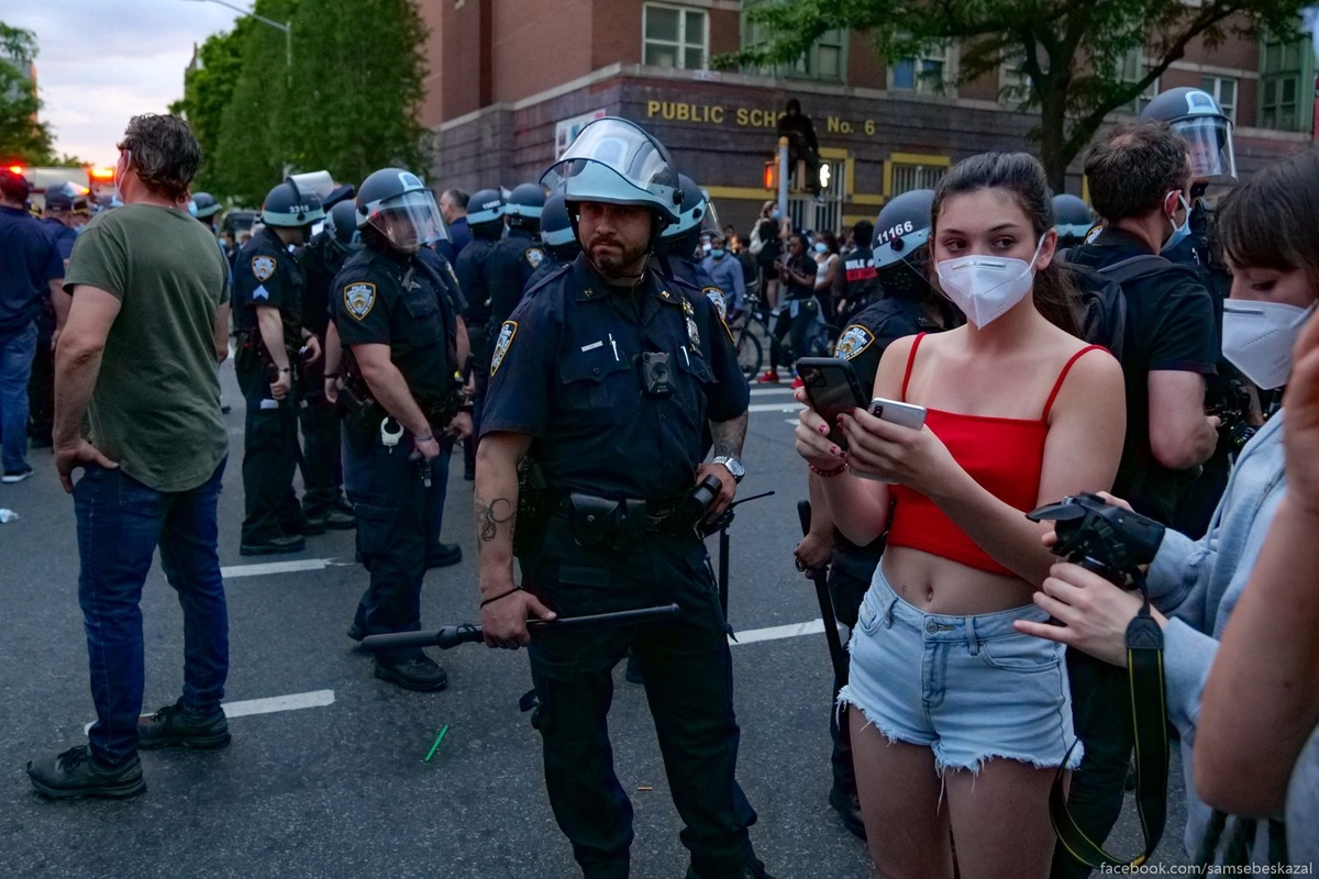 Во многих городах США ежедневно проходят многотысячные акции протеста спровоцированные убийством чернокожего полицейским в Миннеаполисе. В Нью-Йорке все начиналось исключительно мирно, но с каждым днем протестующие и полиция проявляют по отношению друг к другу все больше агрессии и насилия. Теперь это уже не единичные локальные очаги, а многочисленные вспышки в разных районах города.