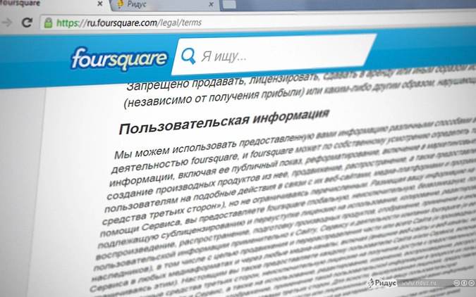 Снимок страницы c условиями использования Foursquare. © Ridus.ru