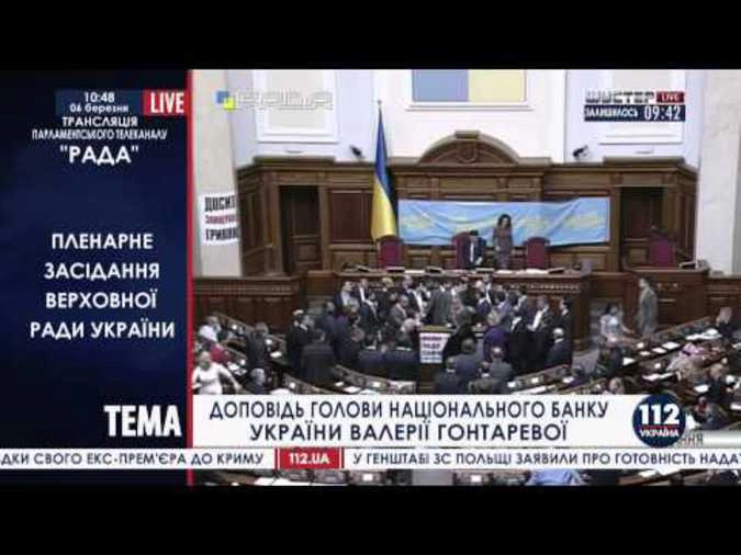 Народные депутаты от фракции Радикальной партии сорвали выступление главы Национального банка Украины Валерии Гонтаревой в парламенте. Во время ее отчета парламентарии начали скандировать «Ганьба!» и «Отставка», а затем подошли к трибуне и заблокировали ее.