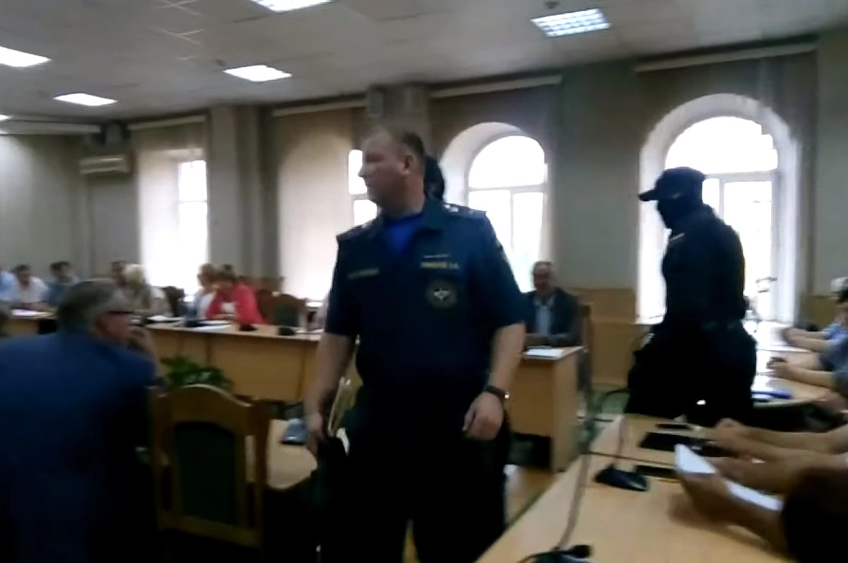На опубликованном порталом видео показано, как вошедшие в зал заседаний правоохранители объявили Пименову причину задержания и вывели его из помещения.